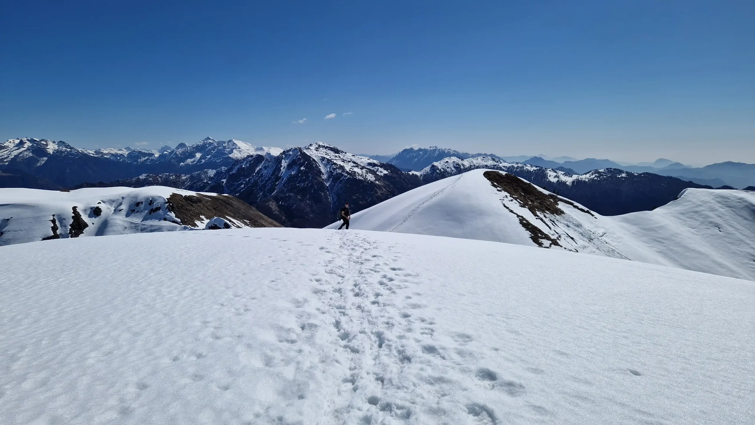 In cambio, si cammina sospesi tra creste dolci e ampi orizzonti, con viste che spaziano dalle Orobie fino alle Grigne e, nelle giornate più limpide, ben oltre. Un itinerario perfetto per chi ama l’inverno vero, quello fatto di silenzi, fatica e panorami che sembrano infiniti. ❄️🤩
